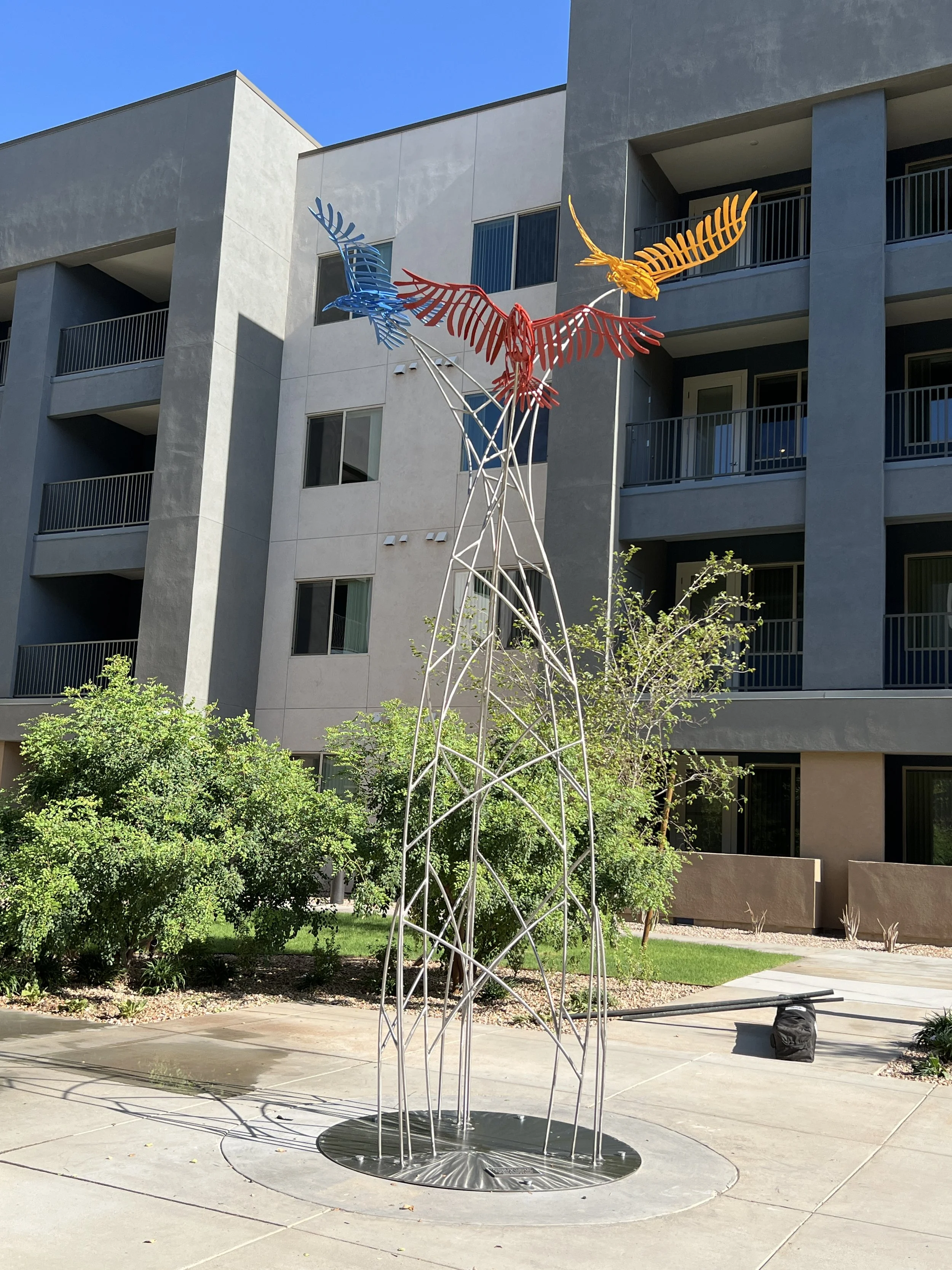 Although all art is created with the public in mind, creating a civic art piece is a completely different process that has its own benefits and challenges. The story of the piece is not mine alone, rather it belongs to the commissioner and to the public. Through the engagement process, the piece takes on a larger meaning and function. The interplay of large sculptural elements - the positive and negative spaces - in a public place changes the impact of the piece, creating an ever-evolving dialogue.